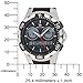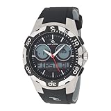 Other features include: dual time, light, countdown timer, stop watch, alarm and date and time functions.Automatic Tide System (ATS): Rip Curl's patented averaging tide system. Easily set to thousands of beaches worldwide.Water-resistant to 660 feet (200 M).Preprogrammed tide function: electronically stored tide charts for 200 preset locations world wide.Screw down crown with 4 seals for extreme water resistance and a countdown timer on an analog watch that keeps track of time for anything from surf heats to the time left on your parking meter. The easy-to-read Rip Curl Men's Shipstern Tidemaster 2 Black and White PU Rubber Tide Watch offers a black dial with both digital and analog time. The large, circular dial displays silver-toned, bar-shaped hour indexes, silver-toned hour and minute hands, and a red seconds hand. Ideal for diving, swimming laps, and other water sports, the watch features a stopwatch, alarm, a countdown timer, date function, and a back light. Plus, the stainless steel, diving bezel is inscribed with indexes from zero to 60. The watch is water resistant to an impressive 660 feet (200 meters), and the screw down crown offers four seals for extreme water resistance. Preprogrammed with tide charts for 200 preset positions around the world, the watch also features the patented Automatic Tide System (ATS) so you can easily set your location to thousands of beaches. A stainless steel case provides strength and durability while the mineral crystal window protects from scratches and nicks. Made from tough polyurethane, the black watch strap is secured with a buckle clasp. The timepiece is equipped with reliable quartz movement.