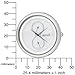316L stainless steel. Mother of pearl dial. Two sundials, one for the date and one for 24-hour time. 100M water resistant.